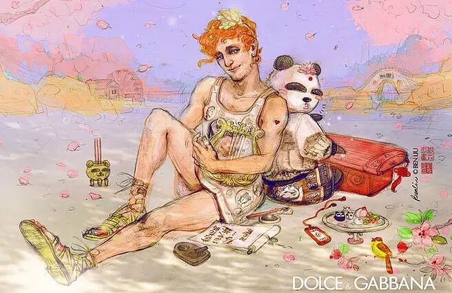 BENDA作为意大利品牌DOLCE & GABBANA杜嘉班纳的代言人,用插画的形式,身穿该品牌服装享受意大利美食。